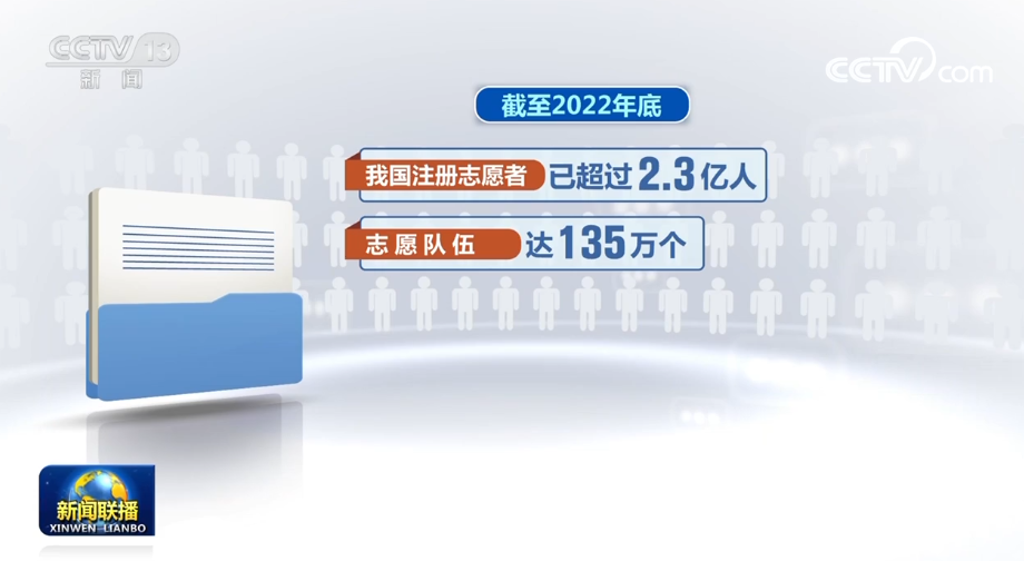 統(tǒng)計數(shù)據(jù)顯示,截至2022年底,我國注冊志愿者已超過2.3億人,志愿隊伍總數(shù)達135萬個。廣為弘揚的雷鋒精神,成為新時代推進社會主義現(xiàn)代化建設(shè)、提升社會文明進步的強大力量。