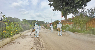 8月6日,河北省永清縣曹家務(wù)鄉(xiāng)張莊子村,工作人員在對洪水過后的街道進(jìn)行消毒。 邵玉姿 龐趁友攝影報道 汛情就是命令,生命重于泰山,防汛救災(zāi)工作絕不能有絲毫放松。加強(qiáng)力量組織救援,妥善安置受災(zāi)群眾,抓緊修復(fù)受損基礎(chǔ)設(shè)施,落實(shí)各項(xiàng)防汛救災(zāi)措施……連日來,各地區(qū)和有關(guān)部門擰成一股繩,以“時時放心不下”的責(zé)任感、“越是艱險越向前”的精氣神,全面加強(qiáng)災(zāi)害防范應(yīng)對,全力以赴開展搶險救災(zāi)工作,全力保障人民群眾生命財產(chǎn)安全和社會大局穩(wěn)定。廣大黨員干部和群眾團(tuán)結(jié)一心、迎難而上,搶抓時間窗口,采取多種措施,盡快恢復(fù)正常生產(chǎn)生活秩序,堅決打贏防汛抗洪救災(zāi)遭遇戰(zhàn)。 |