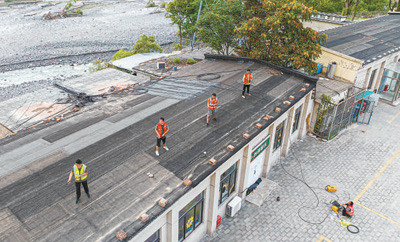 8月5日,中國移動北京公司搶修人員在北京市門頭溝區(qū)王平鎮(zhèn)鋪設(shè)光纜。 本報記者 張武軍攝