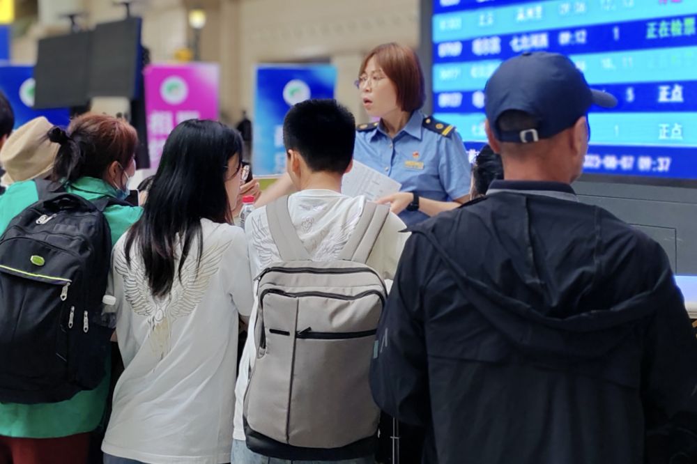 8月7日,乘客在車站咨詢列車開(kāi)行等信息。(中國(guó)鐵路哈爾濱局集團(tuán)有限公司供圖)