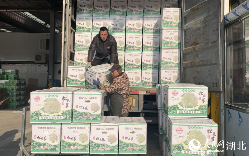 整車蔬菜整裝待發(fā)。人民網(wǎng)記者 張雋攝 除了精品水果,餐桌必不可少的蔬菜也是產(chǎn)銷兩旺。 “來,搭把手!”在蔬菜交易區(qū)的檔口,從事蔬菜批發(fā)20多年的陳依坤招呼工作人員把裝有蔬菜的泡沫箱從貨車搬運到短駁車。一車車萵筍、扁豆、大白菜等蔬菜整裝待發(fā),運送到華中地區(qū)二級農(nóng)產(chǎn)品批發(fā)市場和大型商超等。