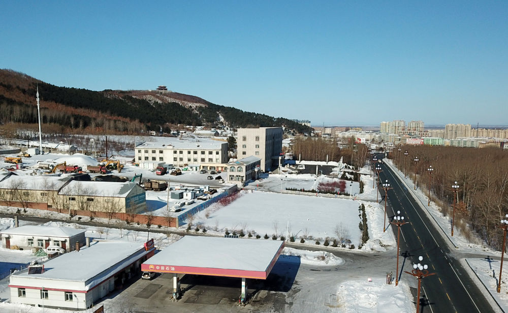 2月2日拍攝的中石油黑龍江撫遠(yuǎn)東方第一加油站(無人機照片)。