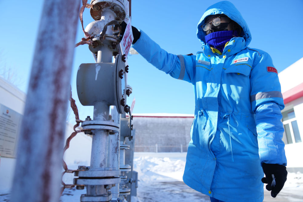 2月2日,中石油黑龍江撫遠(yuǎn)東方第一加油站的員工在站內(nèi)進(jìn)行安全巡檢。