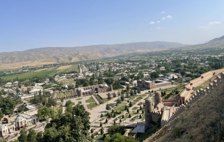 位于塔吉克斯坦杜尚別西北的吉薩爾古城,有著3000多年歷史。有研究認為,張騫出使大宛回程途中曾經(jīng)過此地。圖為從吉薩爾古城城墻俯瞰城門與市鎮(zhèn)。本報記者 曲頌 攝