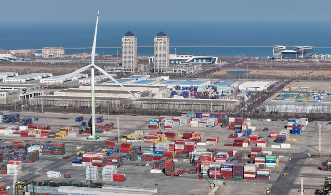訪客進(jìn)入中國北方最大港口城市天津的濱海新區(qū),會(huì)為高速路上源源不斷的重型卡車和港口堆積如山的集裝箱感到吃驚。