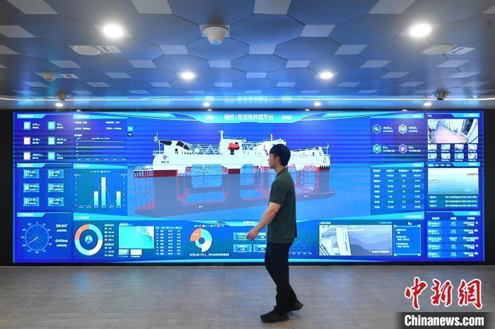 圖為航拍“閩投1號”深海智慧漁旅平臺。(無人機(jī)照片)中新社記者 呂明 攝 從“汗水漁業(yè)”到“智慧漁業(yè)” 傳統(tǒng)漁民養(yǎng)殖魚是一種“汗水漁業(yè)”,不僅辛苦,還常受制于天氣、水文等多種因素制約。此外,傳統(tǒng)的近海養(yǎng)殖也由于養(yǎng)殖密度過高導(dǎo)致水質(zhì)污染、病蟲害頻發(fā)等,成為壓在漁民心上的石頭。 擁抱數(shù)字技術(shù),走向遠(yuǎn)海養(yǎng)殖,成了進(jìn)一步探索“藍(lán)色糧倉”的出路。而要發(fā)展智慧深遠(yuǎn)海養(yǎng)殖,裝備和技術(shù)是關(guān)鍵。在“閩投1號”智慧漁業(yè)系統(tǒng)顯示屏上,記者看到了包括大黃魚動態(tài)的實時監(jiān)測、水下生物識別以及水文、水質(zhì)、氣象等多項數(shù)據(jù),水下情況“一覽無余”。