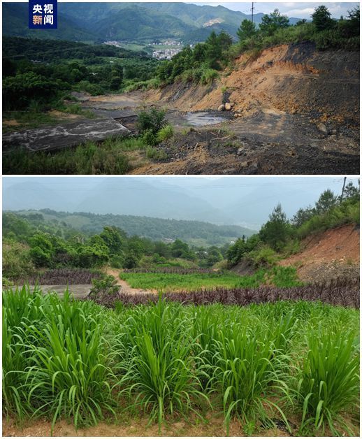 △礦山修復前(上)后(下)對比圖 曾經傷痕累累的山體,正恢復綠樹蔥蘢、花草繁茂,一派美麗的鄉(xiāng)村景致,實現(xiàn)煤炭產業(yè)向生態(tài)農業(yè)的華麗轉身。 (總臺央視記者 宋云霄) ?2024中央廣播電視總臺版權所有。未經許可,請勿轉載使用。