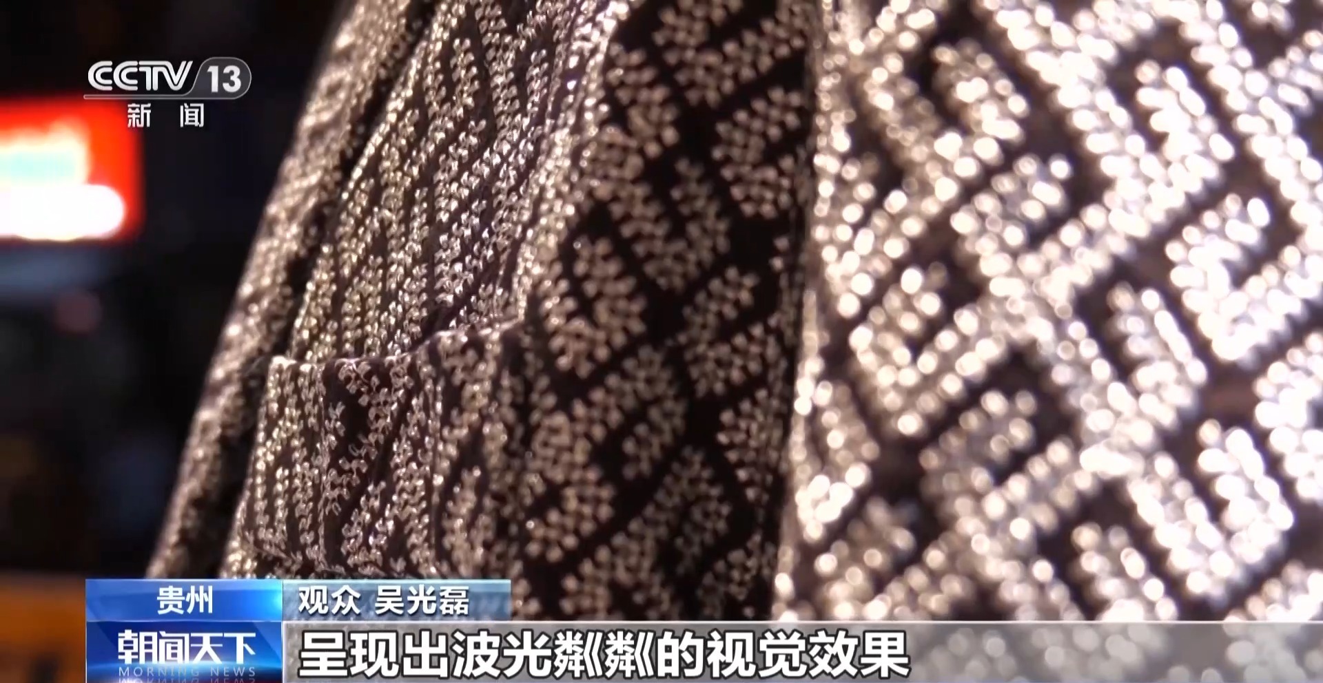 觀眾 吳光磊:錫繡與別的刺繡不一樣。它在場(chǎng)上呈現(xiàn)出波光粼粼的視覺(jué)效果。