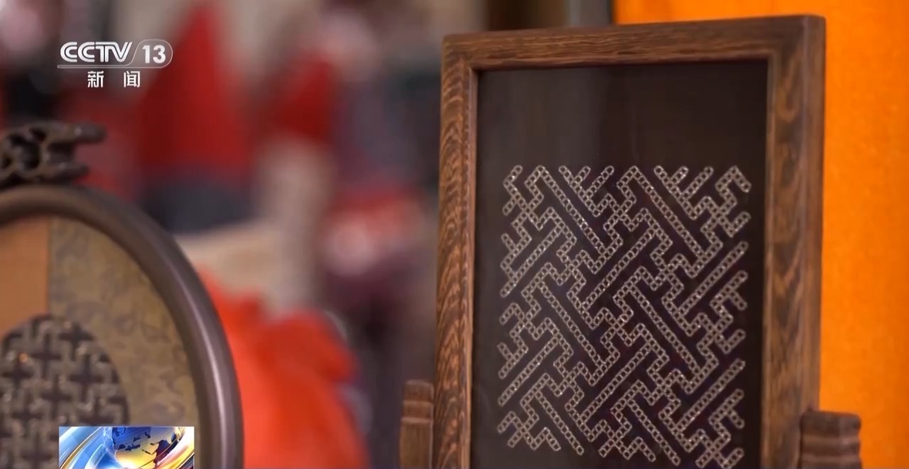 苗族錫繡非遺傳承人 王亨石:三根棉線(xiàn)算一根,這些線(xiàn)交叉起來(lái)才能做出錫繡圖案。