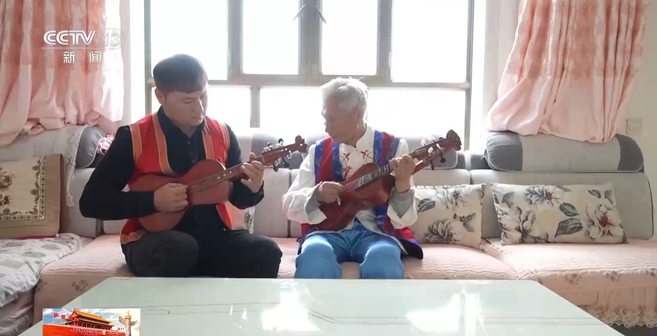 在霍爾果斯,像曹光耀這樣的民間藝人還有很多,走進(jìn)伊車嘎善錫伯族鄉(xiāng)伊車嘎善村,循著聲音,就能找到當(dāng)?shù)胤沁z傳承人孔玉崇老人的家。市里大大小小的演出,都少不了孔玉崇老人和他的“噶善牡丹”樂隊(duì),只要得空,他們就會(huì)聚在一起排練。 鴛鴦琴、手風(fēng)琴、小提琴、電吹管,民族樂器和西洋樂器在“噶善牡丹”樂隊(duì)中完美融合,而最具特色的,就是孔玉崇老人和他徒弟手中的鴛鴦琴。