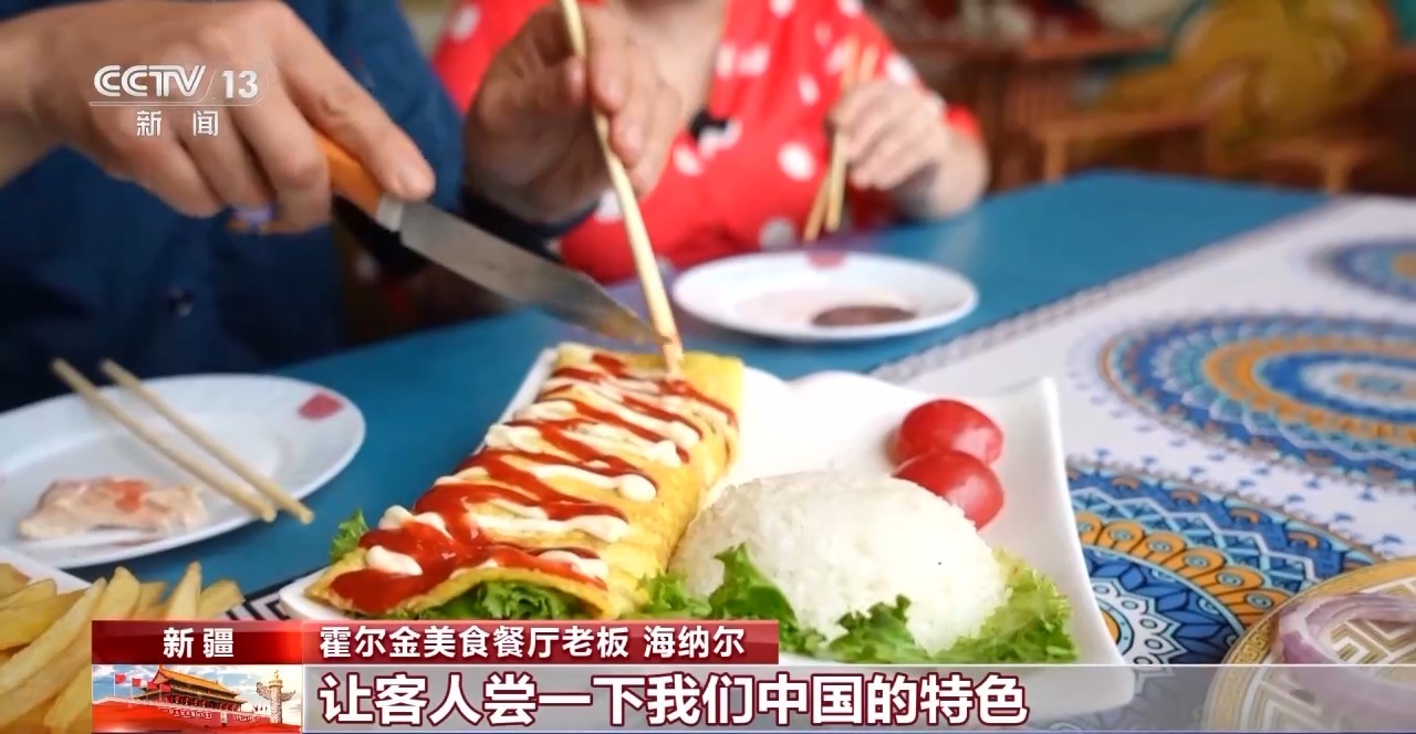 霍爾金美食餐廳老板海納爾:我開這個(gè)餐廳,兩個(gè)國家的廚師帶過來,讓客人嘗一下我們中國的特色,哈方的特色,我們繼續(xù)努力,繼續(xù)干。