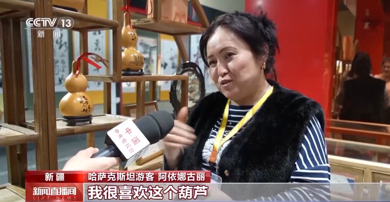 哈薩克斯坦游客 阿依娜古麗:我很喜歡這個(gè)葫蘆,我覺得它展示了中國的傳統(tǒng)文化,中國有5000年的文化,我非常喜歡。這是我第一次來到中國,我會(huì)把在這里的所見所聞講給我的家人,以后我還會(huì)再來的。