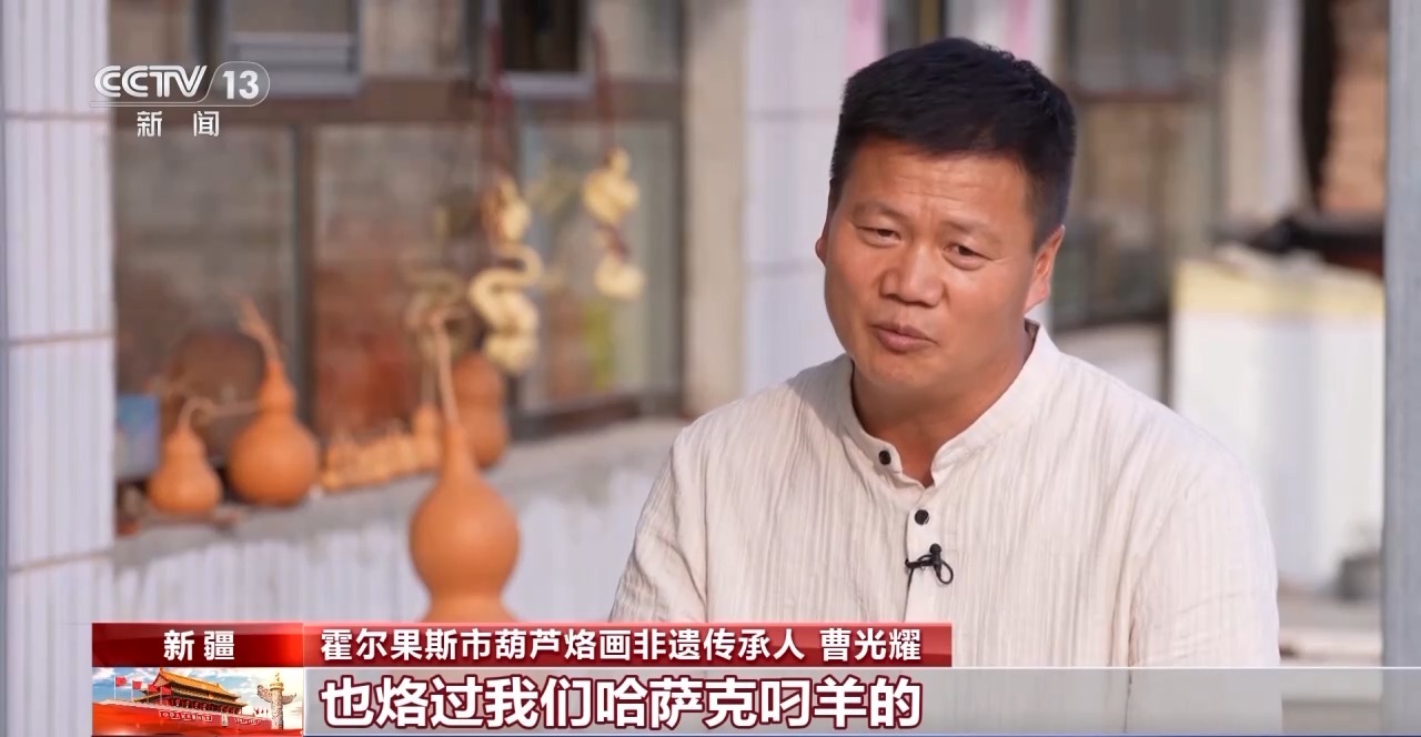 霍爾果斯市葫蘆烙畫非遺傳承人 曹光耀:特別喜歡烙我們新疆的特色,獨(dú)特之處就是說燙畫、烙畫、火筆畫它能顯出一種自然的美,它還有古色古香的古韻,特別接地氣。作為烙畫非遺傳承人,我們必須要把好的文化傳承下去。