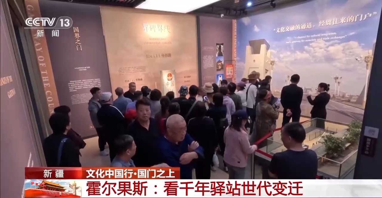 總臺(tái)央視記者 王莉:從霍爾果斯第六代國門向北,就來到了第五代國門。如今第五代國門雖然已經(jīng)不再承擔(dān)國門的功能,但是當(dāng)?shù)匕阉慕ǔ闪嘶魻柟箛T文化展示館,通過文字、圖片、視頻向大家講述著國門的變遷,口岸的歷史。
