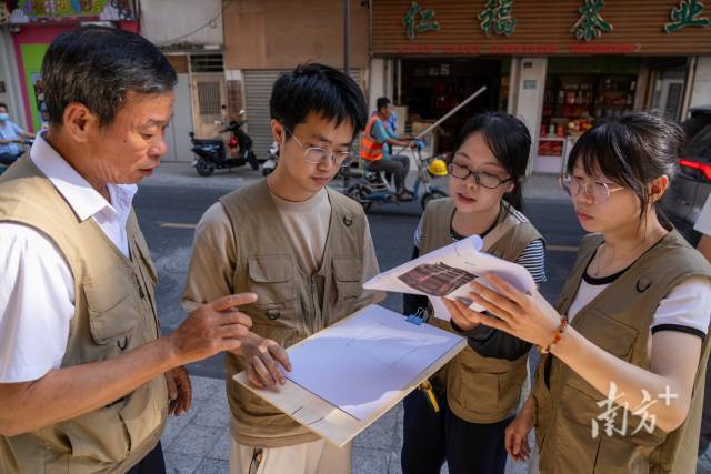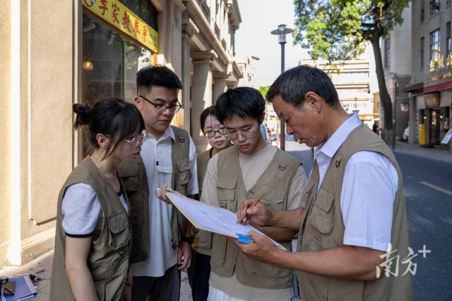 這支特別的文物普查隊(duì)由三代文保工作者組成,年齡最大相差接近40歲,由參加過“三普”的區(qū)文化館老館長林永利帶隊(duì),區(qū)文廣旅體局副局長張耀輝領(lǐng)著幾名區(qū)博物館的“90后”,深入小公園走街串巷,不錯(cuò)過任何文物的蛛絲馬跡。