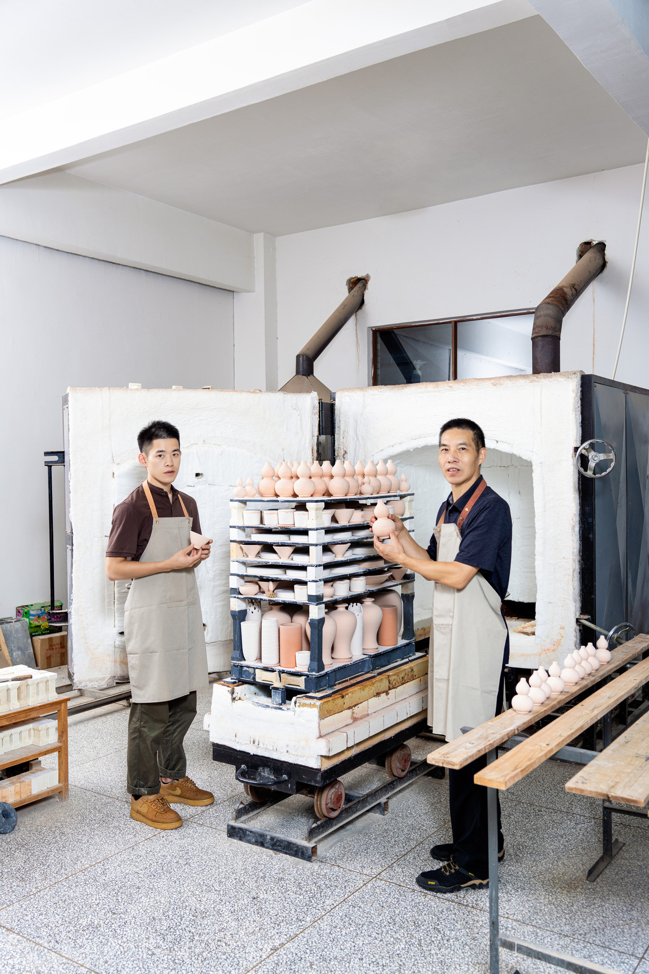 葉晨曦與父親葉小春。這個(gè)龍泉青瓷世家已經(jīng)傳承了七代。圖片由受訪者提供 自嘉慶年間起,葉家就開(kāi)始制作青瓷,迄今已有200余年歷史。而一片陶瓷凝結(jié)的歷史,更是如長(zhǎng)江水般源遠(yuǎn)流長(zhǎng)。 考古發(fā)現(xiàn),早在萬(wàn)年前,長(zhǎng)江流域的湖南道縣玉蟾巖、江西萬(wàn)年縣仙人洞等石器時(shí)代遺址都出土陶器,隨后在浙江河姆渡、四川巫山大溪、湖北屈家?guī)X、浙江良渚等文化遺址中,大量陶器重現(xiàn),串起令人驚嘆的華夏文明。 瓷器從陶器脫胎而來(lái),并逐步對(duì)歐洲及南洋諸國(guó)大量輸出,成為中國(guó)面向世界的重要文化符號(hào)——英文中,“瓷器(china)”正與“中國(guó)(China)”同為一詞。 歷史的片段經(jīng)水火淬煉后被銘刻,永不褪色。2022年6月,全國(guó)第一個(gè)古陶瓷基因庫(kù)——江西景德鎮(zhèn)古陶瓷基因庫(kù)在御窯博物院正式揭牌。2400余套、近萬(wàn)件瓷片標(biāo)本,大部分出自景德鎮(zhèn)當(dāng)?shù)?,時(shí)間跨度從晚唐至民國(guó)時(shí)期。在今人手中,古瓷片的“基因密碼”被一一破譯:一塊碎瓷片標(biāo)本能提取出的考古信息涵蓋造型、紋樣、胎釉、款識(shí)…… “以今汲古、以古爍今,我們借助當(dāng)今的科技手段去挖掘古代陶瓷信息,再進(jìn)行活化應(yīng)用?!本暗骆?zhèn)御窯博物院院長(zhǎng)翁彥俊說(shuō)。譬如,提取瓷片上的花朵紋樣數(shù)據(jù),讓當(dāng)代設(shè)計(jì)師運(yùn)用到創(chuàng)作中,沉睡的藝術(shù)就能煥發(fā)新顏。 元代,一抹幽藍(lán)色澤的青花瓷,曾引領(lǐng)世人對(duì)色彩的想象。 而今,在90后“景漂”張鴻之手中,青花有了另一番面貌:青花瓷上躍動(dòng)著的人,有古代裝扮,也有時(shí)新穿著;有東方人,也有西方人;有現(xiàn)實(shí)生活,也有志怪神話(huà)……是熟悉的水墨韻味,也是頗具現(xiàn)代性的新意設(shè)計(jì)。 從大學(xué)本科開(kāi)始,張鴻之便來(lái)到景德鎮(zhèn)研習(xí)陶瓷。從科班,到窯口,再到成立個(gè)人工作室……十年之間,除了自身成長(zhǎng)、設(shè)計(jì)語(yǔ)言更為純熟,張鴻之也看著景德鎮(zhèn)的陶溪川文創(chuàng)街區(qū)如同瓷器淬火,在光與熱中一點(diǎn)點(diǎn)蛻變—— 大煙囪高聳,紅磚廠房陣列排布,極簡(jiǎn)個(gè)性的藝術(shù)展廳營(yíng)造出工業(yè)美學(xué)風(fēng)。周末夜晚,煙火氣流動(dòng),攤位一眼望不到邊。年輕人熱衷來(lái)夜市“碰瓷兒”,并將這里的收獲帶回日常:花紋古樸的咖啡杯,造型奇特的雪茄缸……