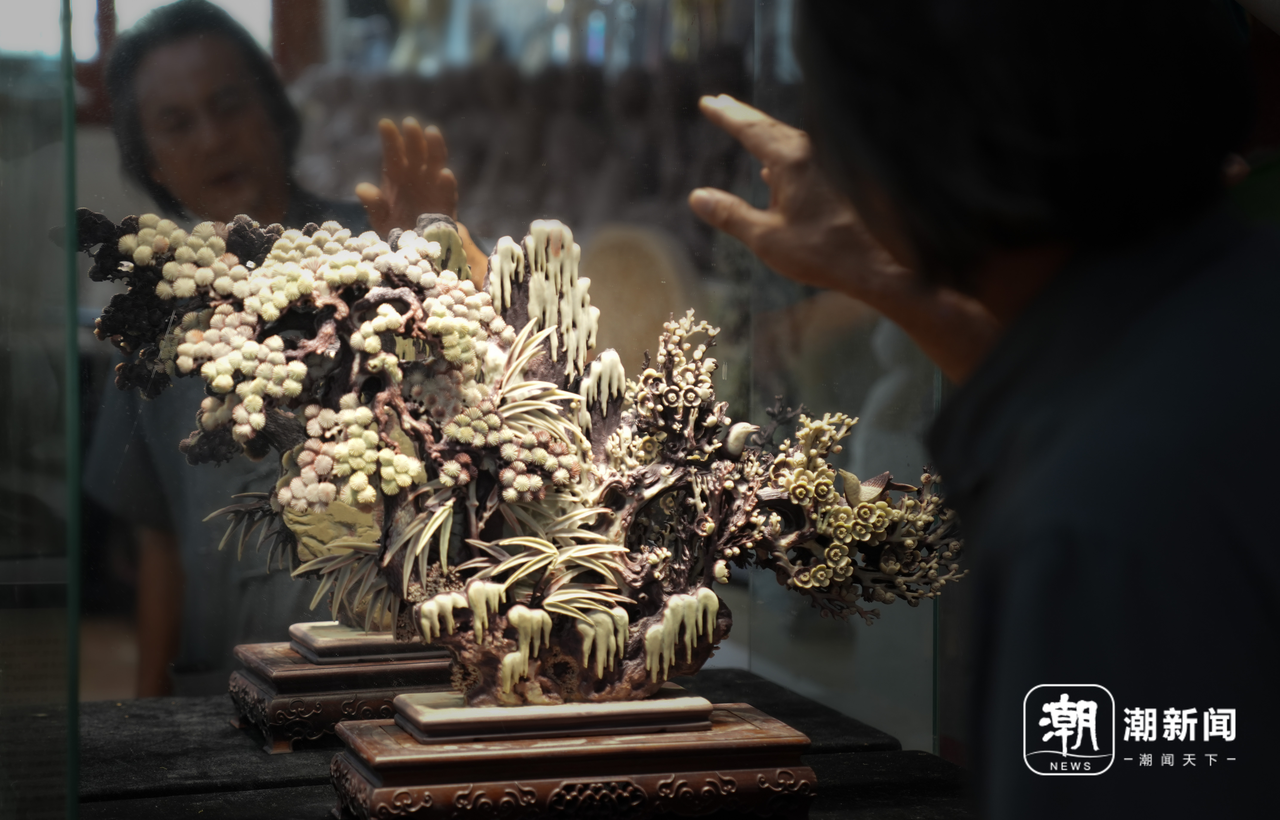 劉能風(fēng)的作品“歲寒三友”博采眾長(zhǎng),兼收并蓄。記者 彭鵬 攝 以往,大足石刻更注重造型。但劉能風(fēng)對(duì)青田石雕“因勢(shì)造型、依色取巧”的技藝產(chǎn)生了興趣。最終,他選擇了來(lái)自貴州梵凈山的紫袍玉為原料雕刻“歲寒三友”。 “這件作品中,我除了采用圓雕、浮雕和線刻技術(shù),還借鑒了東陽(yáng)木雕鏤空雕的技術(shù)?!眲⒛茱L(fēng)介紹。 “一門(mén)手藝要想活下來(lái),后人要博采眾長(zhǎng)、有所創(chuàng)新,才能生生不息?!眲⒛茱L(fēng)的話(huà)語(yǔ)間,透著濃厚的重慶味。開(kāi)山化石,本就是重慶人的精神和態(tài)度;兼容并蓄,更是劉能風(fēng)在傳承之路上悟出的道理。 戲曲、音樂(lè)、美食、服飾、節(jié)慶、民俗、手工技藝……濃縮體現(xiàn)了長(zhǎng)江沿岸百姓類(lèi)型豐富、活態(tài)存在于當(dāng)下的生活方式和地域文化,中華民族的精神理想、生活情感、倫理道德、氣質(zhì)節(jié)操,全然蘊(yùn)含其中。 正如歷史學(xué)家馮天瑜在《長(zhǎng)江文明》一書(shū)中所言:“長(zhǎng)江流域多元共生、和而不同的文化特征,正是中華文明博大包容力的寫(xiě)照,也是中華文化面對(duì)全球化挑戰(zhàn)的策略抉擇,不同文化之間的相互交流、整合、吸納,不斷為中華文化的發(fā)展注入新的活力?!?/p> 迭變:為有源頭活水來(lái) 岳麓山腳下,在國(guó)家級(jí)非物質(zhì)文化遺產(chǎn)湘繡代表性傳承人李艷的工作室,一場(chǎng)母女間的“碰撞”通過(guò)繡品悄然展開(kāi)。 館內(nèi)一側(cè),珍藏著融合李艷創(chuàng)新針?lè)ǖ碾p面繡座屏《山獸之君》,同款曾以220萬(wàn)元高價(jià)拍出,成為刺繡作品國(guó)際市場(chǎng)的價(jià)值標(biāo)桿;而另一側(cè),在李艷女兒昌妮主理下,湘繡不再是高不可攀的鴻篇巨制,轉(zhuǎn)而翩然游動(dòng)于腰扇、香薰盒,乃至冰箱貼、車(chē)掛之上。 30余年前,學(xué)油畫(huà)的李艷打破常規(guī),把繪畫(huà)語(yǔ)言巧妙地融入刺繡中,并自創(chuàng)了汗毛針、絨毛針、卷毛針、毛針?biāo)姆N新針?lè)?,終成一代湘繡大師。