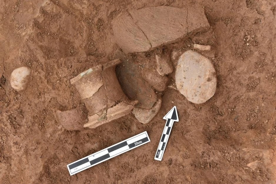 除此之外,考古隊(duì)員們還在灰坑里找到了大量陶器。這些陶器按陶質(zhì)可分為泥質(zhì)和夾砂兩種,以?shī)A砂陶為主。