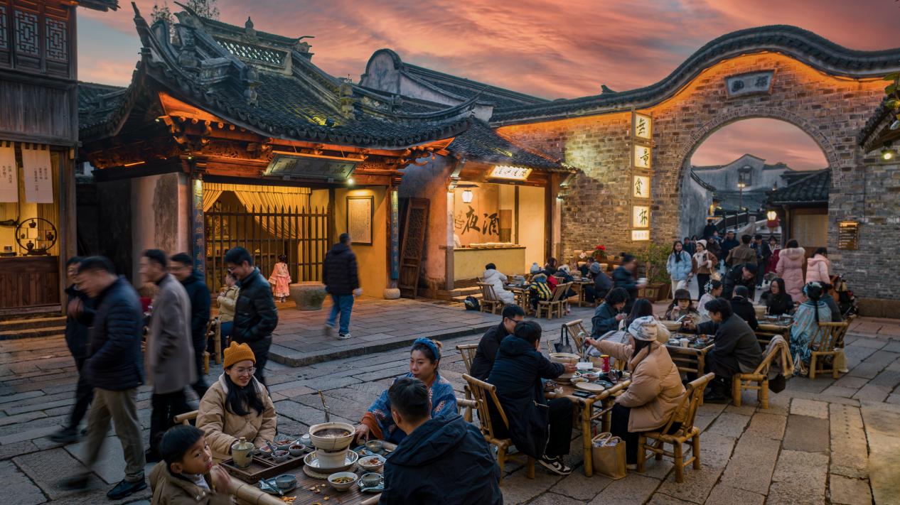 在浙江嘉興烏鎮(zhèn)景區(qū),游客們圍坐一桌,吃暖鍋,在暖意融融中體驗水鄉(xiāng)古鎮(zhèn)的文化韻味。據(jù)介紹,為邀各方游客享美食、佳釀,烏鎮(zhèn)景區(qū)特別推出以特色湖羊為主“暖鍋”和年貨市集、冬夜詩會等文化活動。