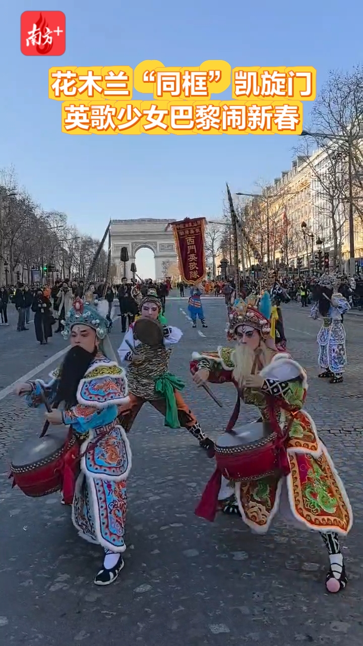 花木蘭“同框”凱旋門,英歌少女巴黎鬧新春