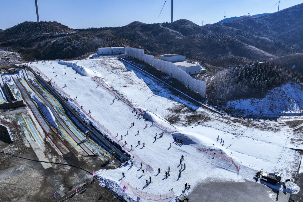 2025年1月11日,人們在成都市大邑縣西嶺雪山雪場滑雪(無人機(jī)照片)?,F(xiàn)今四川擁有近50個冰雪旅游區(qū),重點(diǎn)滑雪場16家。省內(nèi)一些地區(qū)還設(shè)有室內(nèi)冰雪場、旱雪場,讓滑雪愛好者全年都能享受“雪上”樂趣。