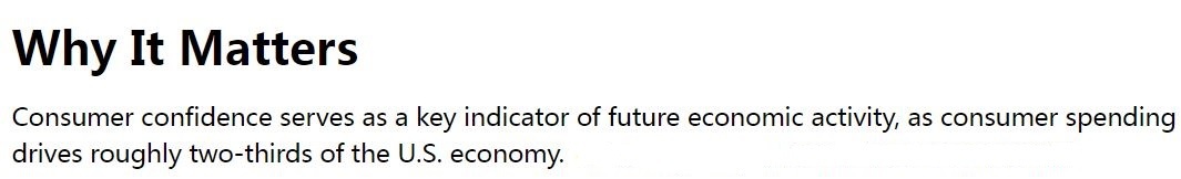 CCI既反映美國人對當前經(jīng)濟狀況的評估,也反映他們對未來六個月的展望,是預測美國未來經(jīng)濟前景的關(guān)鍵指標。