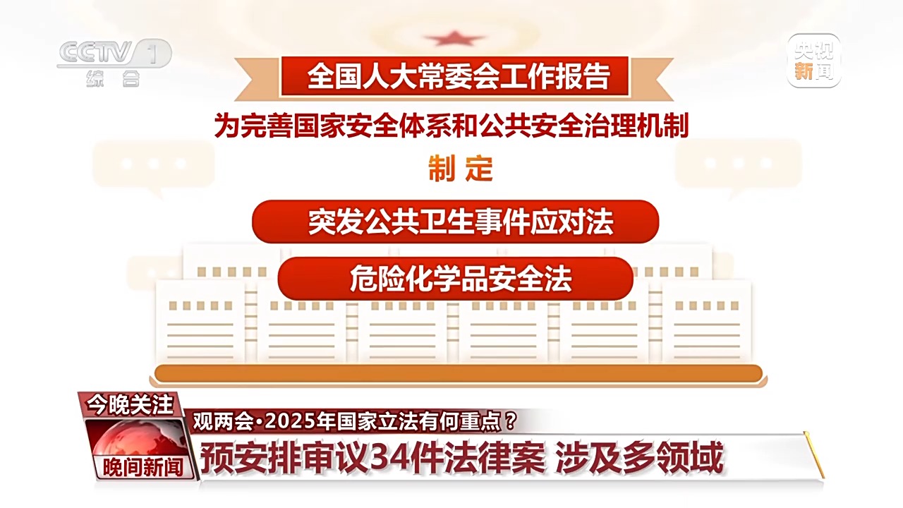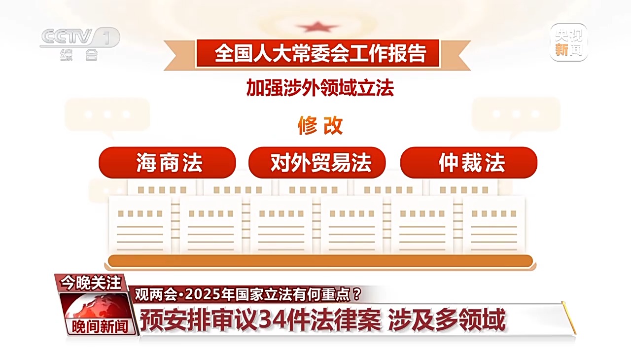 全國(guó)人大常委會(huì)工作報(bào)告顯示,2025年預(yù)安排審議34件法律案。