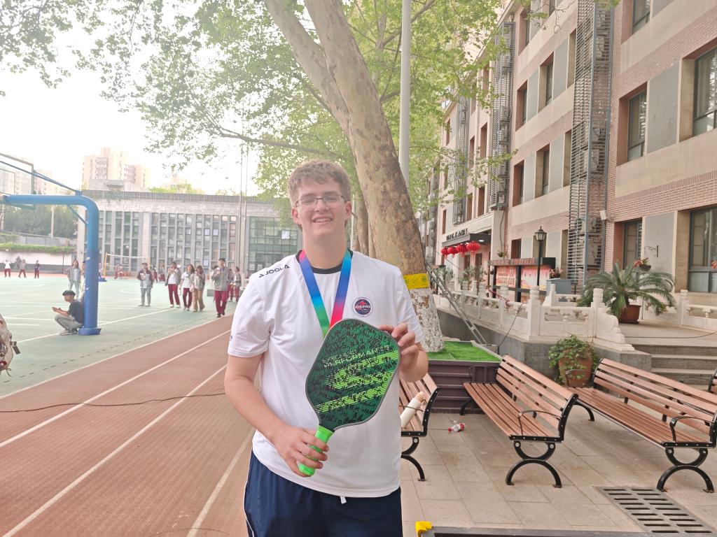 4月15日,在深圳南山外國語學(xué)校高新中學(xué),中美兩國學(xué)生結(jié)對(duì)進(jìn)行匹克球雙打比賽。新華社記者梁旭攝 ——競技,兩國伙伴擊球中“對(duì)話”,以運(yùn)動(dòng)建立聯(lián)結(jié)。 17日下午,北京中學(xué)西壩河校區(qū)運(yùn)動(dòng)場,明黃匹克球輕盈飛舞在空中,匹克球雙打友誼賽在這里舉行。 馬里蘭州丘吉爾高中學(xué)生謝拉茲·巴希爾正和中國隊(duì)友進(jìn)行賽前熱身:先顛球,盡量用球拍中心接球,適應(yīng)節(jié)奏;再進(jìn)行落地式發(fā)球練習(xí),保持發(fā)力平穩(wěn)。 “新手持拍最好像握拳一樣,五指握住整個(gè)手柄。如果食指在拍后支撐,有可能會(huì)受傷?!边@一局他們的對(duì)手瑞恩撿球路過,給出熱心建議。 比賽正式開始時(shí),突然刮來的一陣風(fēng)改變了球的走向,謝拉茲安慰錯(cuò)失擊球的隊(duì)友,“沒關(guān)系,下次風(fēng)可能順著我們這邊,我們再利用風(fēng)向,調(diào)整戰(zhàn)略?!?/p>