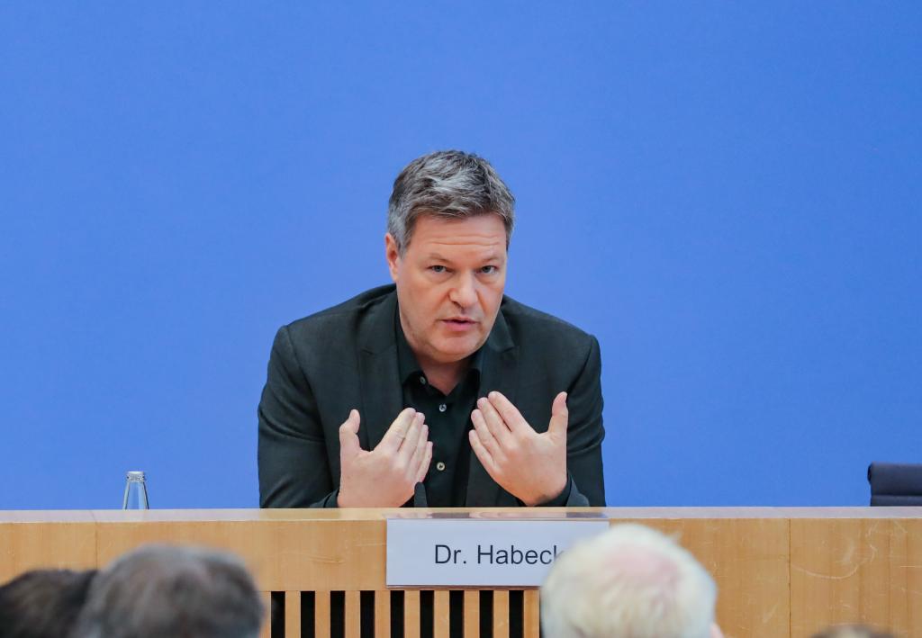 2月24日,在德國柏林,德國副總理兼經濟部長哈貝克出席新聞發(fā)布會。新華社記者張帆攝