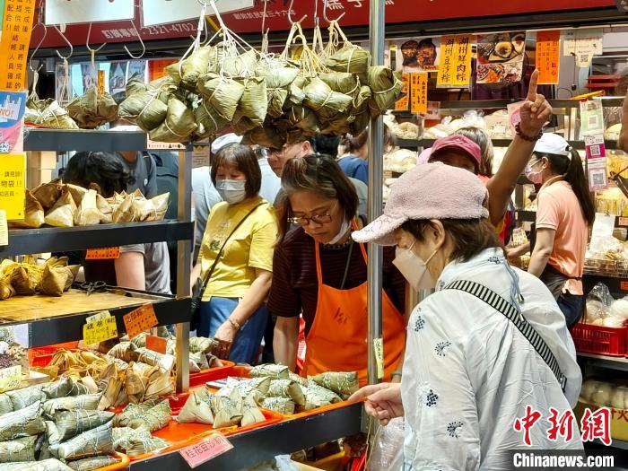 5月30日,臺灣迎來端午節(jié)連假,各大市場粽香四溢,民眾紛紛前往選購粽子等節(jié)慶美食。圖為臺北南門市場,民眾排隊選購粽子。中新社記者 張曉曦 攝