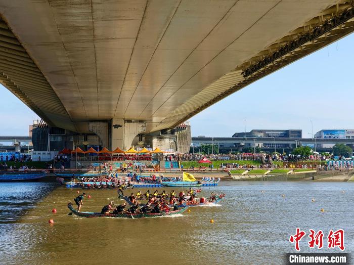 5月30日,臺灣迎來端午節(jié)連假,全臺多地舉行龍舟比賽等活動。圖為臺北大佳河濱公園,2025臺北國際龍舟錦標賽首日比賽正在進行。中新社記者 張曉曦 攝