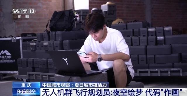上海中心大廈商務(wù)運(yùn)營(yíng)有限公司總經(jīng)理 梅雪:隨著國(guó)家的免簽政策,這個(gè)假期是境內(nèi)境外的客人雙增。現(xiàn)在夜間的客人增量非常大,所以我們也采取了很多的一些便民措施,比方說延長(zhǎng)我們的營(yíng)業(yè)時(shí)間,然后讓游客們靜靜心心地在上海之巔看完整個(gè)城市的景觀,也充分地了解我們上?!澳Ф肌钡镊攘?。 重慶:業(yè)態(tài)創(chuàng)新百花齊放 催生多元新職業(yè)群體 上海的夜晚,不光流光溢彩,更是充滿了活力,給整個(gè)城市都注入了一股蓬勃生命力。而隨著新的消費(fèi)場(chǎng)景誕生,也催生了不少新職業(yè)。 這幾年,重慶的夜景那可是火遍了全國(guó),尤其是在主城兩江四岸核心區(qū)域啟動(dòng)的常態(tài)化無人機(jī)燈光秀展演,作為一種夜間娛樂形式吸引了大量國(guó)內(nèi)外游客,由此增加的消費(fèi)活動(dòng)所帶來的漣漪效應(yīng)為當(dāng)?shù)亟?jīng)濟(jì)作出很大貢獻(xiàn)。光影魔法是如何點(diǎn)亮重慶夜空的呢?讓我們一起去看看背后的故事↓ 無人機(jī)群飛行規(guī)劃員:夜空繪夢(mèng) 代碼“作畫” 夏夜以來,每周六,5000架無人機(jī)在長(zhǎng)江、嘉陵江交匯處就會(huì)來一場(chǎng)表演,當(dāng)人們沉醉于流動(dòng)的光影時(shí),鮮少有人留意,這背后凝聚著一群人的專注與付出。