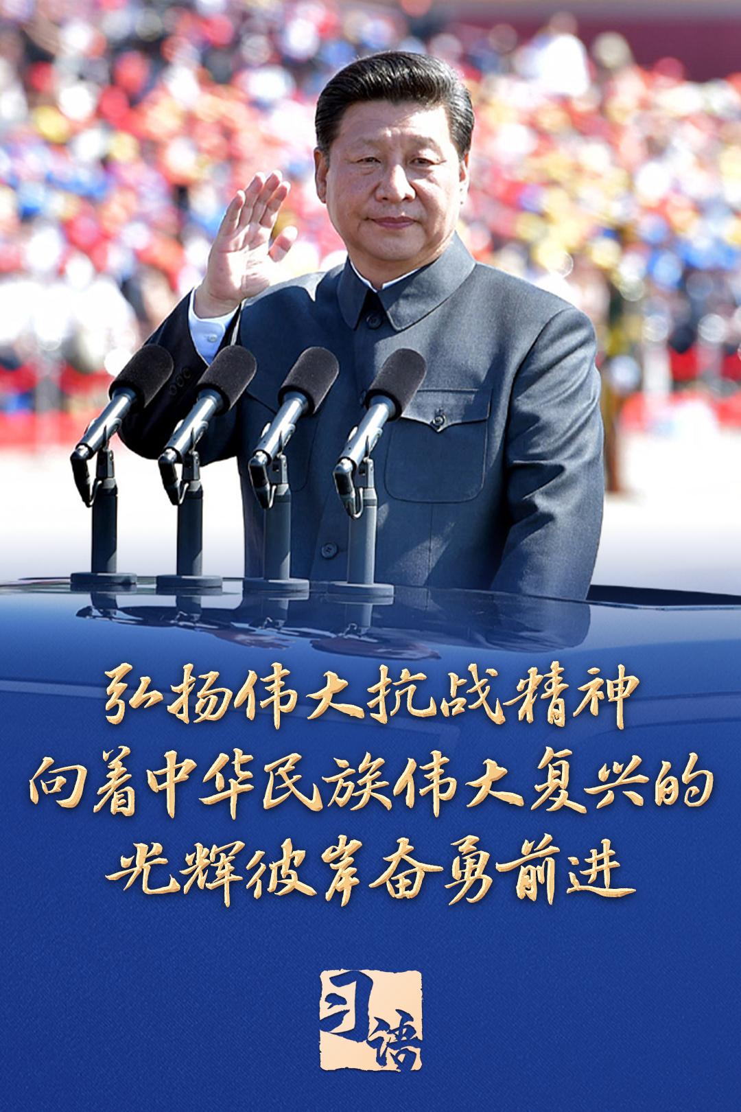 “全黨全軍全國(guó)各族人民,海內(nèi)外所有中華兒女,要更加緊密地團(tuán)結(jié)起來(lái),弘揚(yáng)偉大抗戰(zhàn)精神,向著中華民族偉大復(fù)興的光輝彼岸奮勇前進(jìn)。”