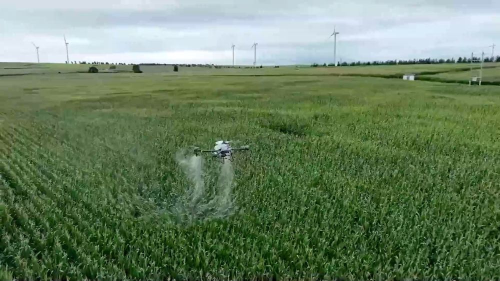 ■從"扛鋤頭"到"點(diǎn)屏幕" 智慧農(nóng)業(yè)促增收 當(dāng)前,正值玉米灌漿期。在內(nèi)蒙古科爾沁右翼前旗察爾森鎮(zhèn)水泉嘎查萬(wàn)畝高標(biāo)準(zhǔn)農(nóng)田上空,裝載農(nóng)藥的無(wú)人機(jī)正在沿著預(yù)設(shè)航線噴灑農(nóng)藥。