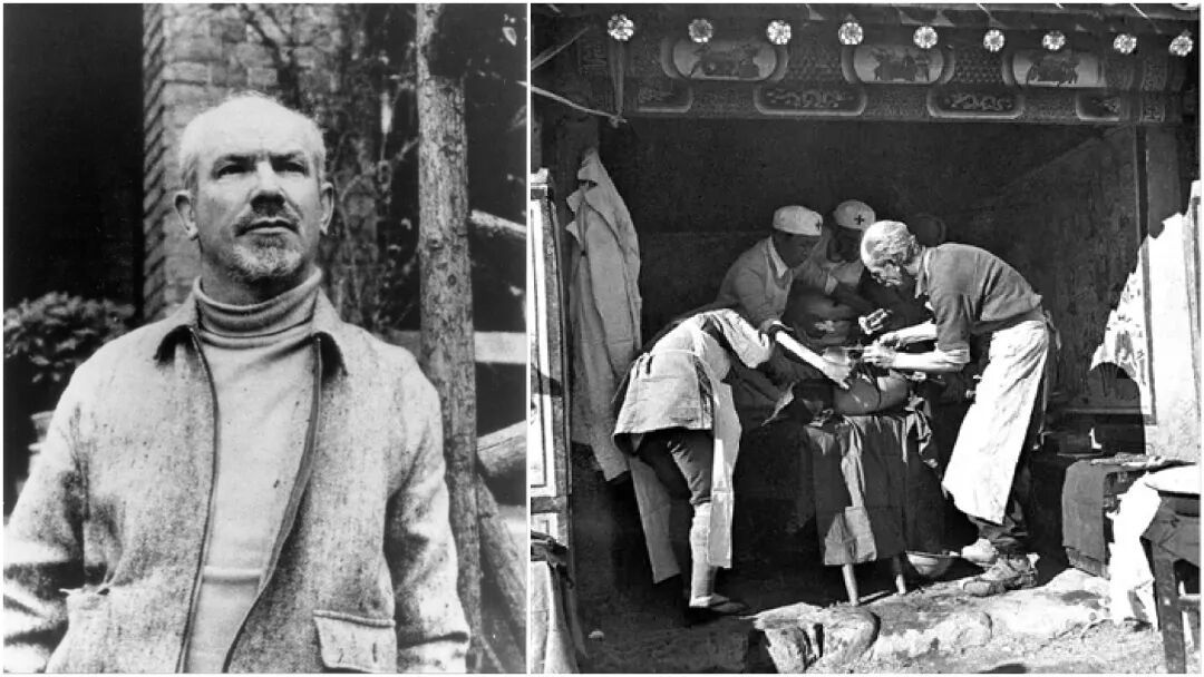 左圖是白求恩,右圖是白求恩在晉察冀邊區(qū)淶源縣臨時(shí)手術(shù)室里為傷員做手術(shù)。 1937年12月到1938年3月 在南京江南水泥廠工作的 貝恩哈爾·辛德貝格 面對(duì)日軍的瘋狂大屠殺 沒(méi)有退縮 而是利用外國(guó)人的身份 設(shè)立難民營(yíng)和難民醫(yī)院 庇護(hù)并救治了約2萬(wàn)名中國(guó)難民