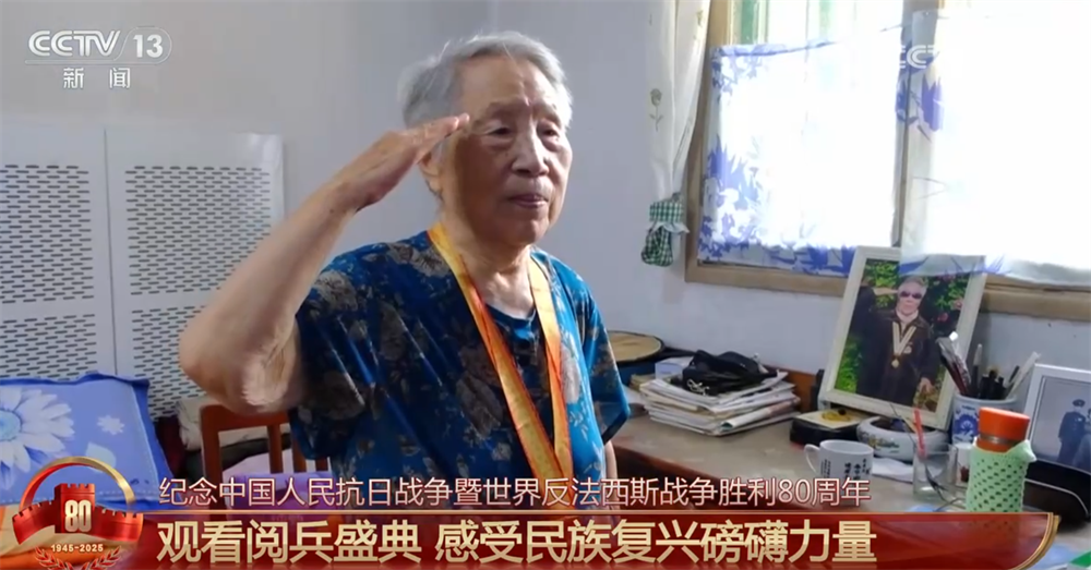 9月3日上午,93歲的劉曉嵐早早地坐在電視機(jī)前,莊重地佩戴上中國(guó)人民抗日戰(zhàn)爭(zhēng)勝利80周年紀(jì)念章,靜靜等候閱兵儀式開啟。當(dāng)閱兵方隊(duì)邁著整齊有力的步伐通過天安門廣場(chǎng),老人的目光始終緊緊跟隨,隨后抬起右手,鄭重地向著電視屏幕敬了一個(gè)標(biāo)準(zhǔn)的軍禮。