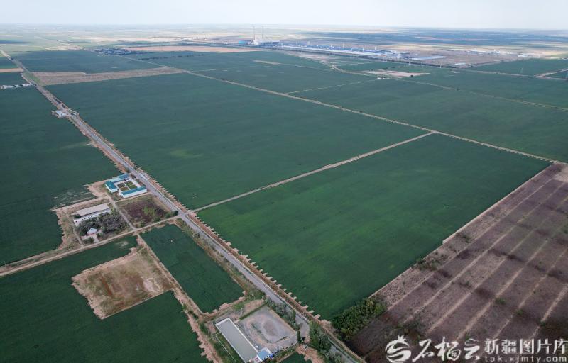 8月10日,俯瞰瑪納斯縣包家店鎮(zhèn)棉花長勢良好的高標(biāo)準(zhǔn)農(nóng)田。石榴云/新疆日報記者 鄒懿攝