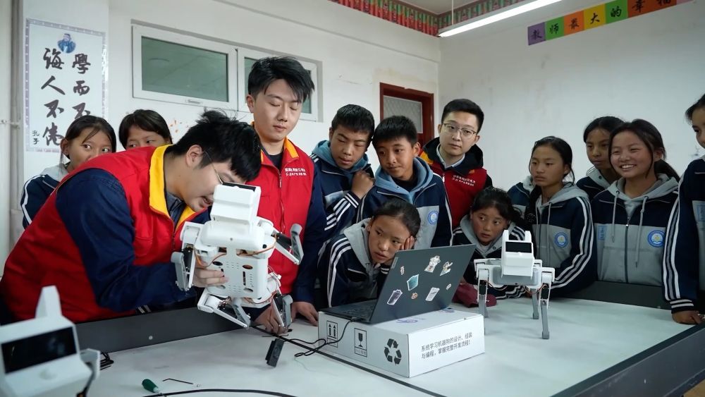 國家電網(wǎng)杭州供電公司"點(diǎn)亮玉樹"公益團(tuán)隊(duì)聯(lián)合青海省玉樹市第二民族中學(xué)開展"AI教育"計(jì)劃,志愿者為孩子們帶去了豐富有趣的人工智能課程,指導(dǎo)他們完成智能機(jī)器狗的組裝和編程。