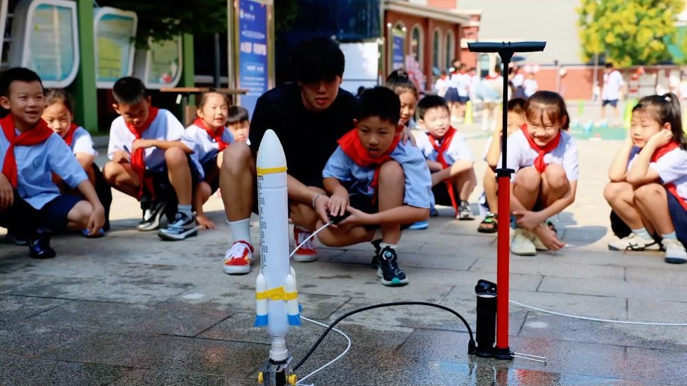 在湖南省常德市,武陵區(qū)第一小學(xué)組織了一場主題為"AI筑夢,科技護(hù)國"的科創(chuàng)節(jié)活動,學(xué)校精心設(shè)置了"火箭發(fā)射""機(jī)械手臂""空氣大炮"等11個科技體驗(yàn)項(xiàng)目,將趣味性與知識性融為一體。