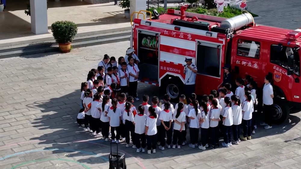 在云南省紅河哈尼族彝族自治州,交警、消防及供電部門聯(lián)合為開遠(yuǎn)市東城小學(xué)的同學(xué)們帶來了一場沉浸式安全知識盛宴。