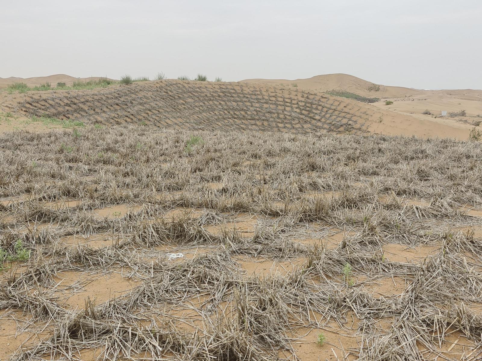 進(jìn)入新時代,中衛(wèi)以技術(shù)創(chuàng)新為動力,加強與中國科學(xué)院沙坡頭沙漠試驗研究站、寧夏大學(xué)、西北農(nóng)林科技大學(xué)等單位合作,探索防沙治沙新技術(shù)、新模式。人工藍(lán)藻沙結(jié)皮、刷狀網(wǎng)繩式草方格、蘆葦高立式沙障三項新技術(shù)已投入應(yīng)用,沙結(jié)皮形成時間由10年縮短為3年,刷狀網(wǎng)繩式草方格比人工扎設(shè)草方格施工效率提高60%。