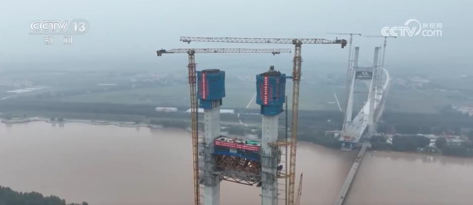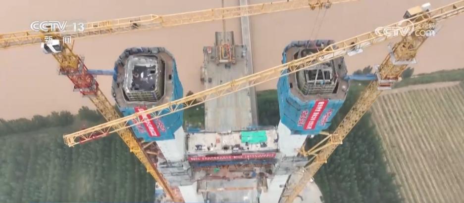 東營黃河公鐵大橋是津?yàn)H高鐵全線"控制性"工程,采用"公路在上、鐵路在下"的公鐵聯(lián)建模式,全長2230.4米,主跨600米,是目前黃河流域在建的最大跨度公鐵兩用斜拉橋。大橋主塔高203.6米,是黃河上最高的公鐵兩用橋主塔。