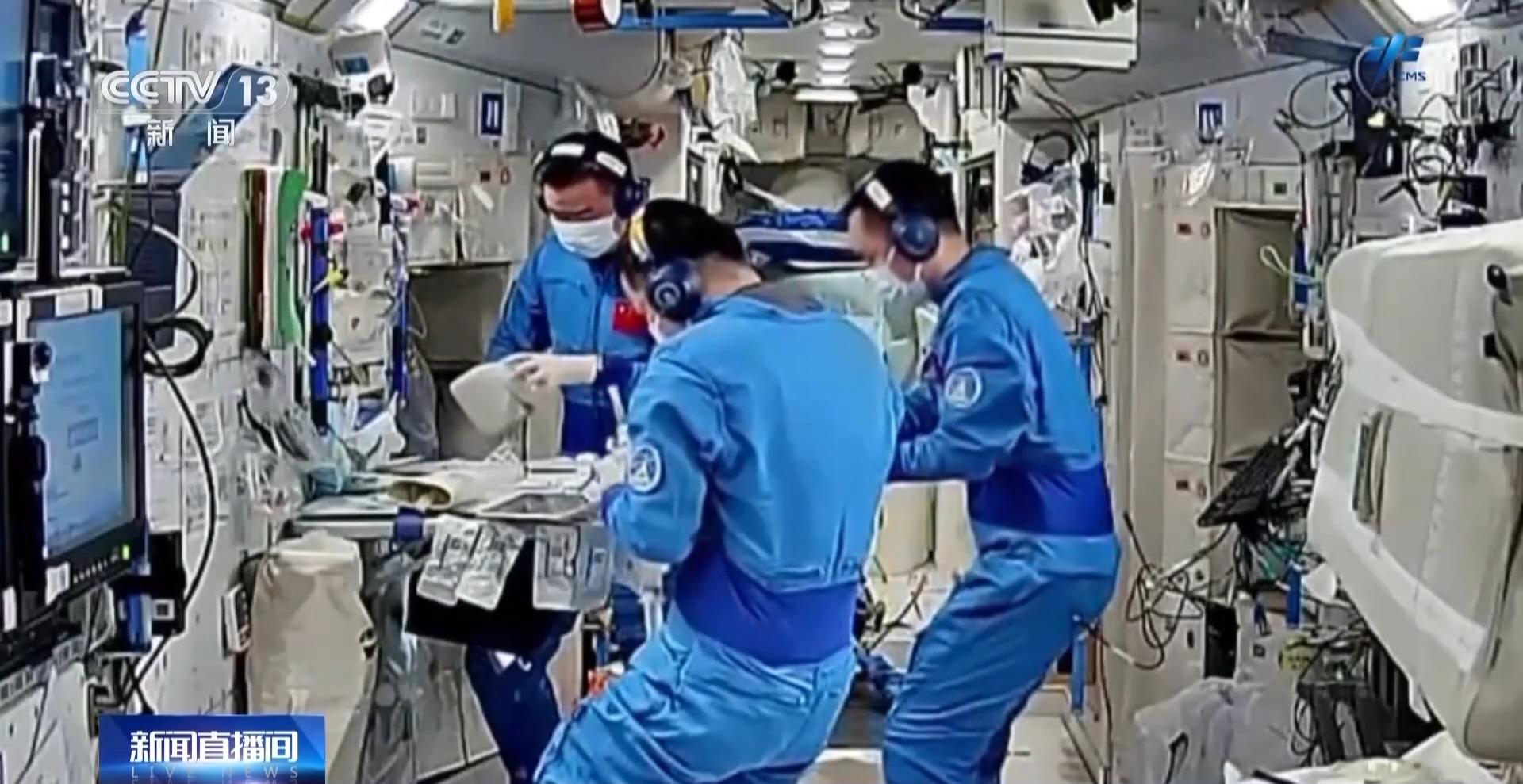 在站務(wù)管理方面,乘組完成了問(wèn)天氣閘艙、夢(mèng)天實(shí)驗(yàn)艙內(nèi)貨包及艙外服轉(zhuǎn)移整理,藥品清點(diǎn)及物資管理相關(guān)工作。