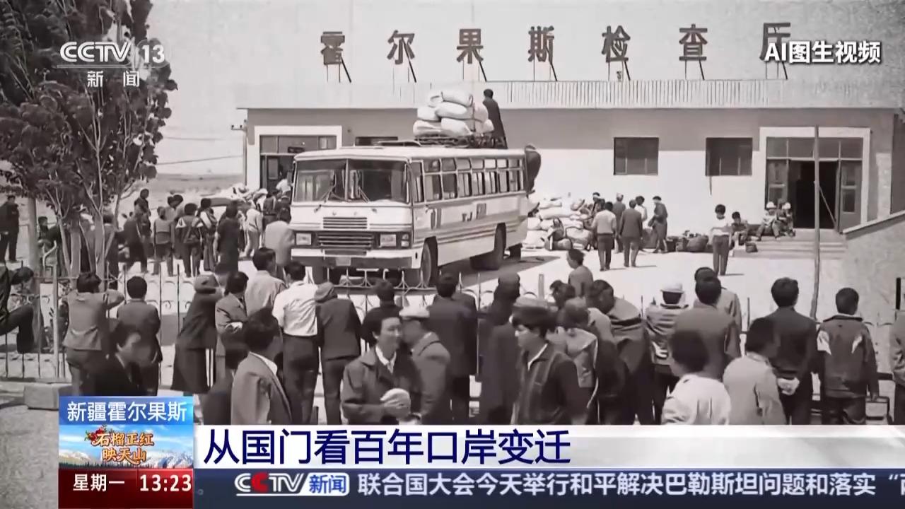總臺(tái)記者 宋文瑾:1952年,為了加強(qiáng)口岸管理,霍爾果斯建起了第一代國(guó)門,一排用紅磚建起的平房,雖然當(dāng)時(shí)少有商貿(mào)活動(dòng)和人員往來,但屋檐上那顆紅色五角星,彰顯著新中國(guó)的自信與希望。