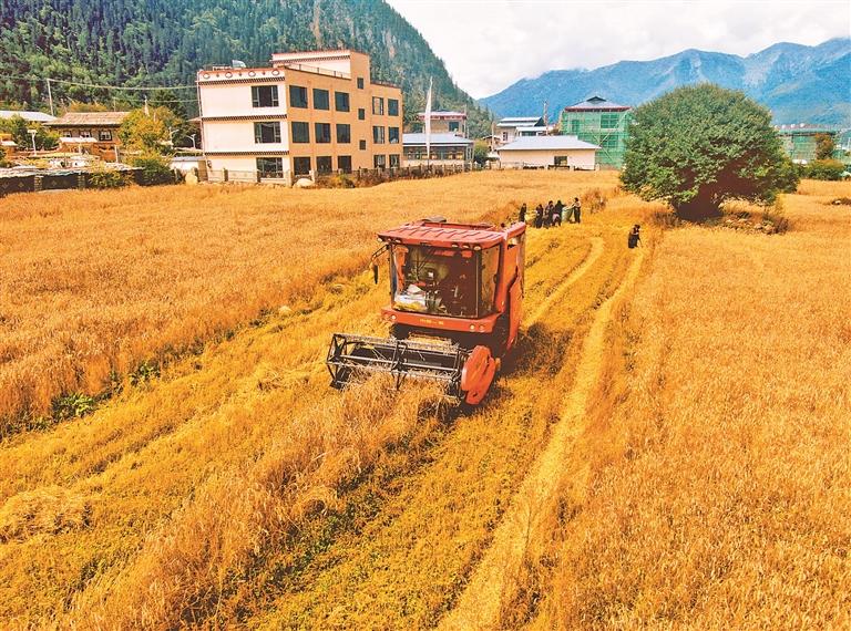 金秋的雪域高原,是一年中最動人的時(shí)節(jié)。蔚藍(lán)的天幕下,金色的青稞麥浪從山腳一直蔓延到云端。在隆隆的機(jī)械轟鳴與悠揚(yáng)的勞作歌聲中,我區(qū)各地農(nóng)區(qū)迎來了豐收的季節(jié)。