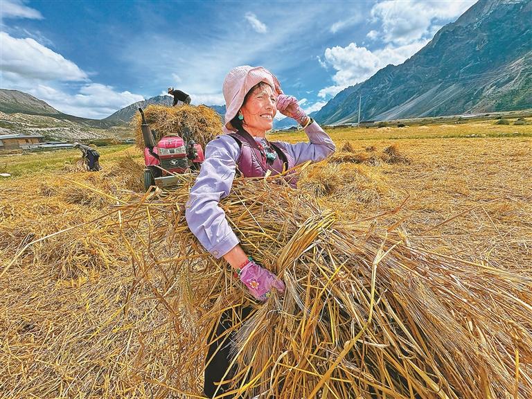 林芝市工布江達(dá)縣錯(cuò)高鄉(xiāng)結(jié)巴村村民秋收場景。本報(bào)記者白瑪澤旺 次仁平措攝