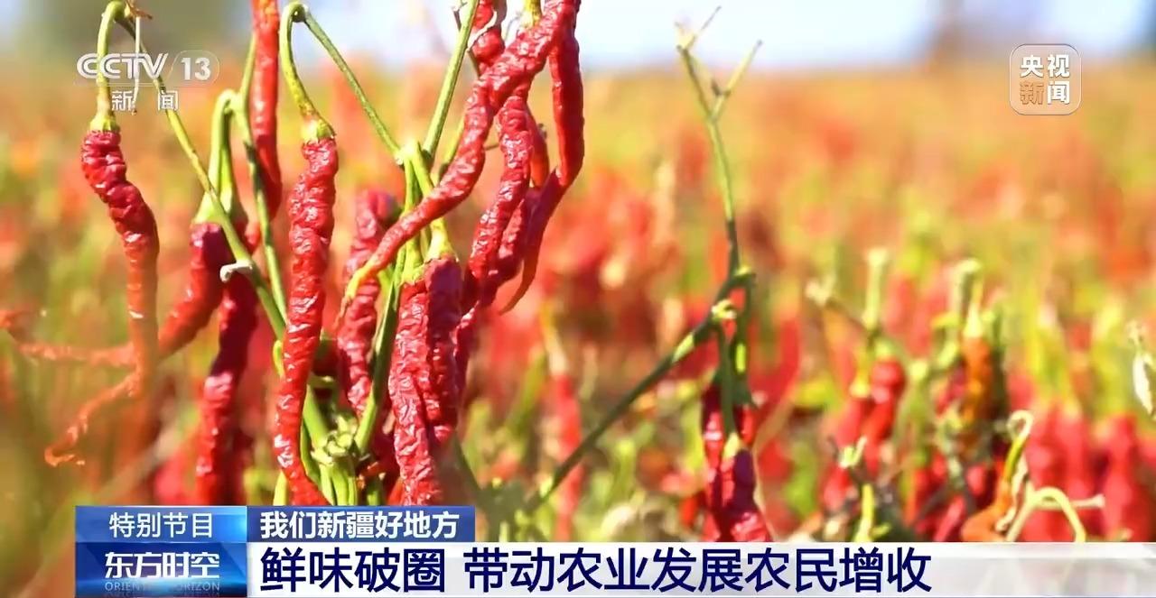 說完了主角,再來說說配菜。這里面的土豆來自博爾通古鄉(xiāng)。最關(guān)鍵的辣椒,是當(dāng)?shù)氐闹饕r(nóng)作物,來自"辣椒之鄉(xiāng)"安集海鎮(zhèn)。過去這里的辣椒只是農(nóng)民零散種植,如今已經(jīng)形成了從育種、種植、加工到銷售的完整產(chǎn)業(yè)鏈。這些辣椒不僅給大盤雞"注入靈魂",也滿足了全國(guó)的餐桌需求,還出口到韓國(guó)、日本等地。