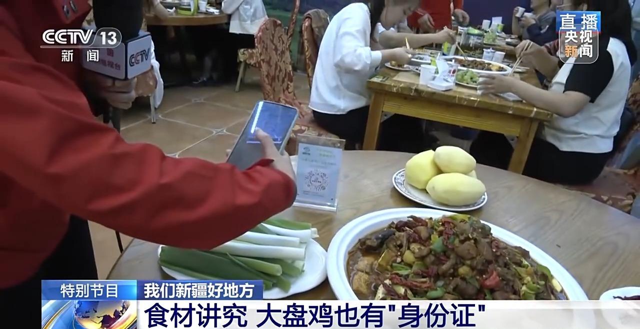 其實(shí),大盤雞里的每一種原料,都是新疆農(nóng)業(yè)發(fā)展的縮影。先說這最主要的雞肉,是來自當(dāng)?shù)貥?biāo)準(zhǔn)化散養(yǎng)的土雞,這可不是一般的雞,它讓大盤雞有了"電子身份證",我們來掃碼看看。