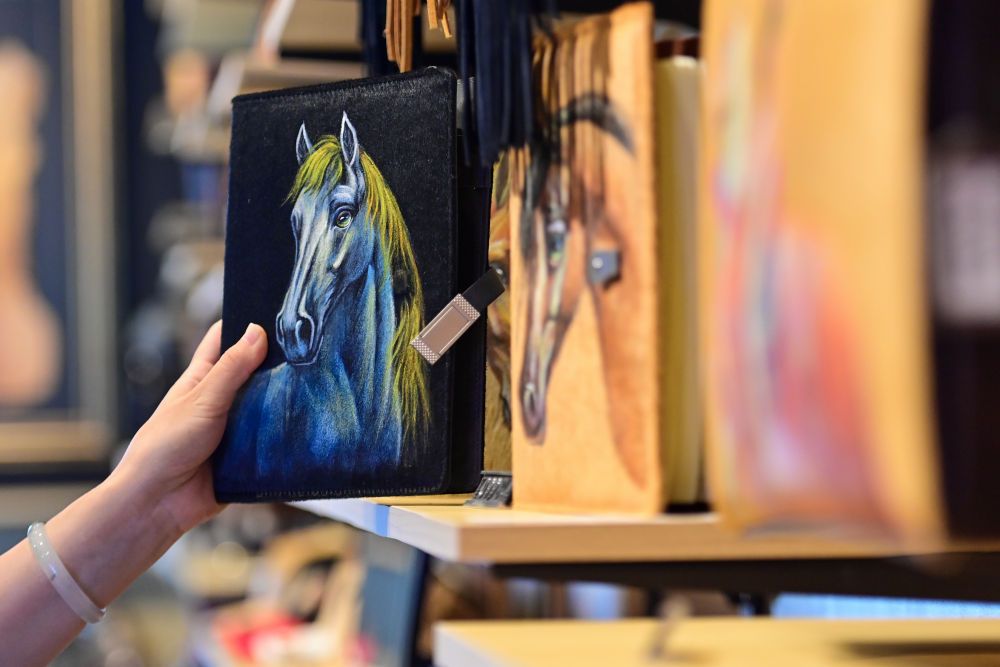 "伊犁是'天馬之鄉(xiāng)',我們?cè)谄っ惑w的馬皮上進(jìn)行手工繪畫(huà),每幅圖案都是獨(dú)一無(wú)二的,讓非遺與旅游深度融合。"店長(zhǎng)茹柯耶·艾散介紹,店鋪還開(kāi)發(fā)出馬毛筆記本、首飾等文創(chuàng)衍生品,深受年輕人喜愛(ài)。