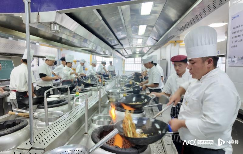 粵菜學(xué)院學(xué)生正在制作干炒牛河。南都N視頻記者 敖銀雪 攝